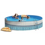 Diámetro exterior cm: 550 | Altura cm: 120 | Litros: 26.120 | Pared: Acero lacado | Espesor liner PVC : espesor lateral 31/100 / espesor base 38/100 | Filtro de arena + Skimer: 4,5 m3/h – Ref: 4885 | Escalera lacada 8 peldaños | Perfiles metálicos blancos (15cm / 14cm)